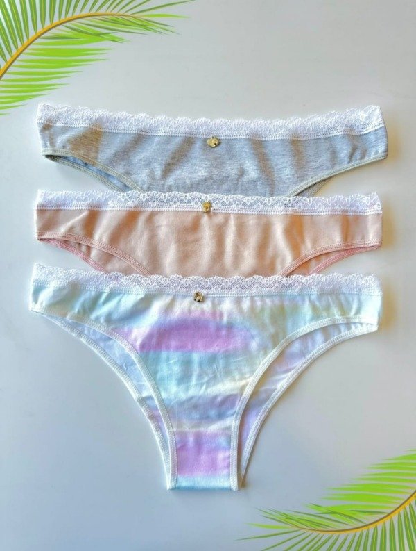 Pack x3 Vedetina de algodón y puntilla lisa y estampada.
