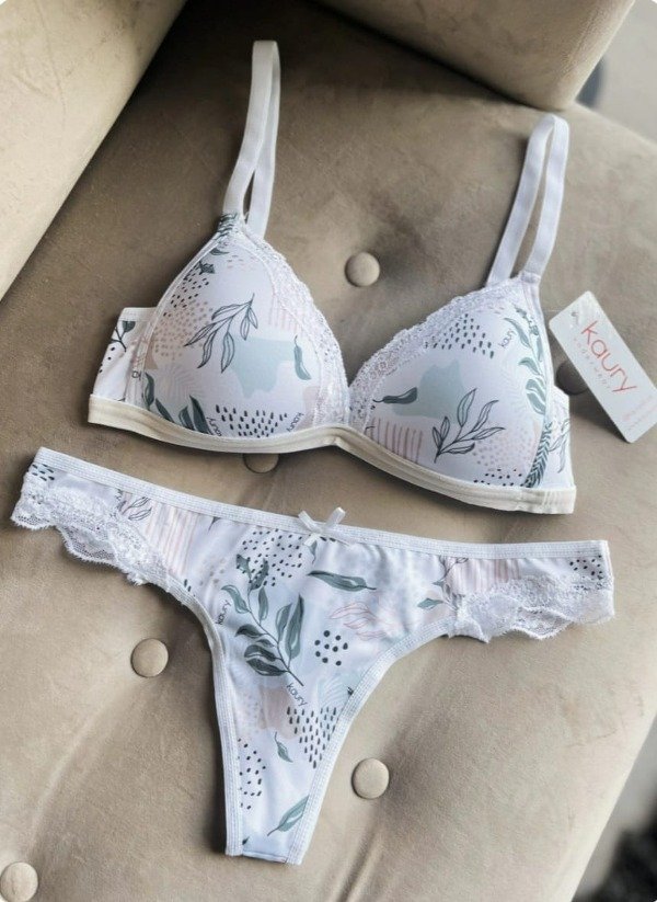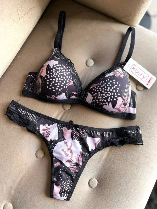 Conjunto de microfibra estampada y puntilla.