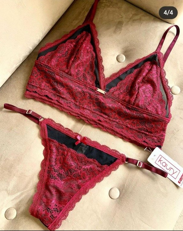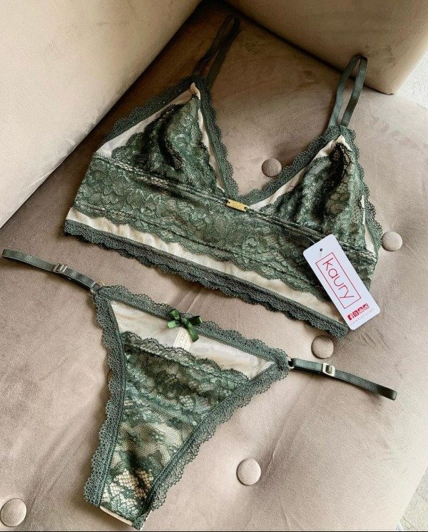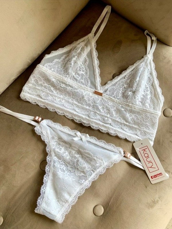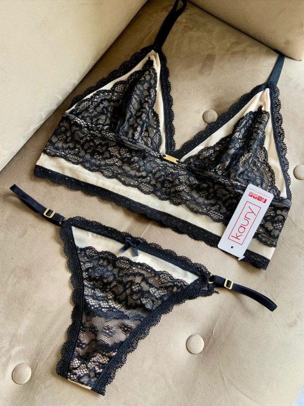 Conjunto de puntilla y tul. Top triangulito y cola less con tiras regulables.