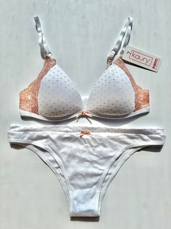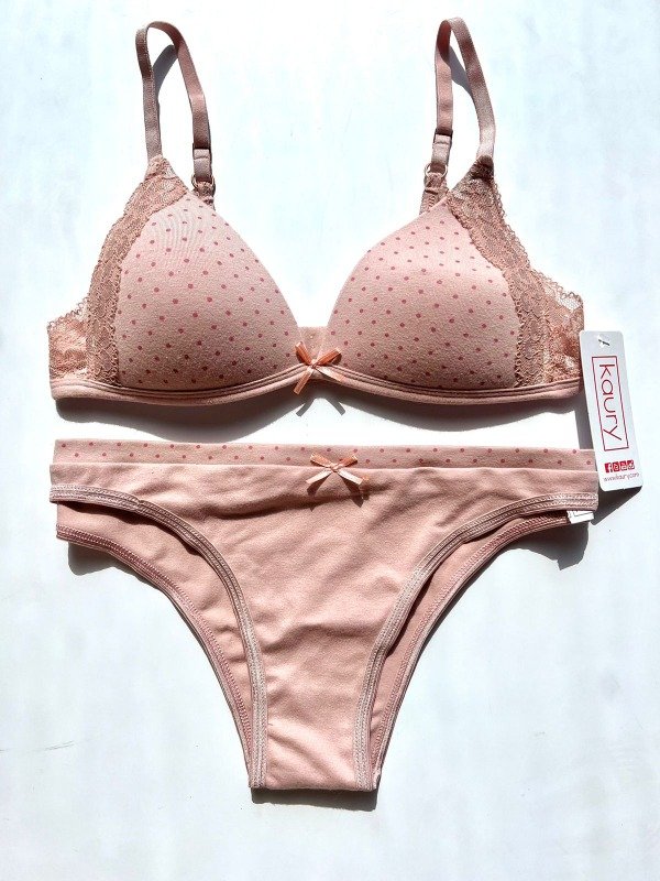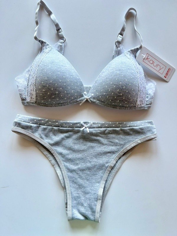 Conjunto de algodón y puntilla. Corpiño triangulito taza soft sin push up y vedetina.