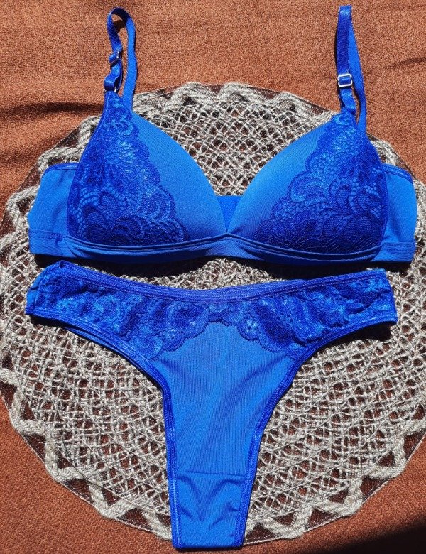 Conjunto taza soft triángulo de microfibra y puntilla con colaless.